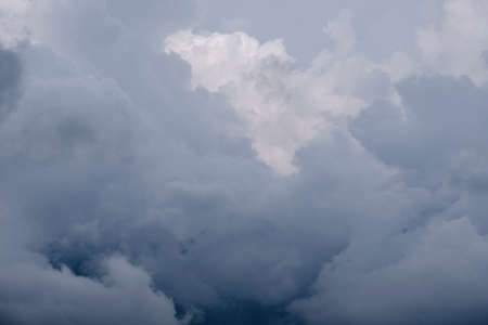 Dark dramatic sky and grey clouds. Background for Halloween day, death, and depression concept. Stormy sky. Sad and moody sky. Cloudscape. Cloudy sky before rain. Hopeless and despair concept.