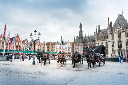 Brugge, Belgium - February 22, 2016: Grote Markt square in medieval city Brugge, Belgium