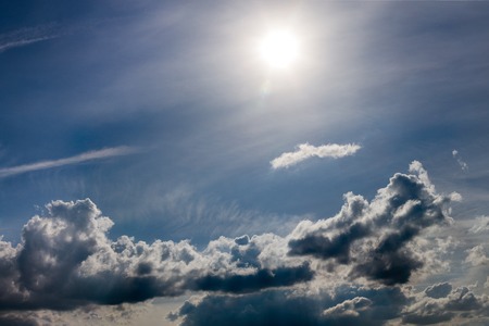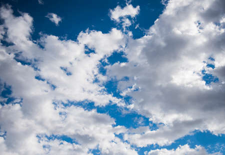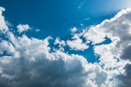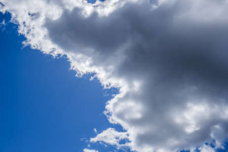 Clouds, close up view on a fluffy cumulus before storm. Background