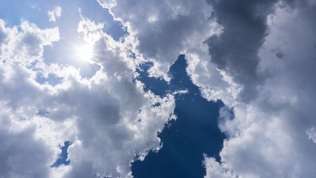 sun shining above beautiful stormy clouds, sky is clearing after rain