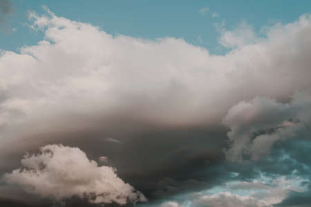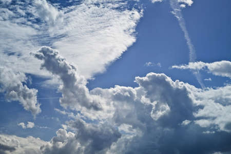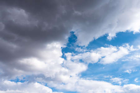 Thunderstorm contrasting cloud, blue sky and white cumulus clouds. Can be used as design element, background.