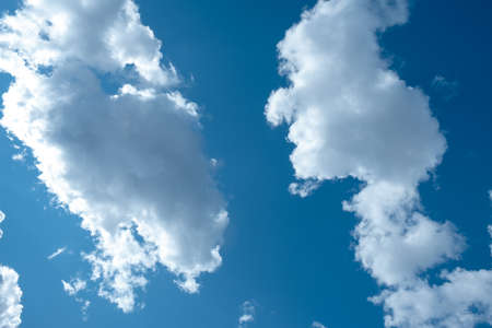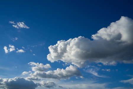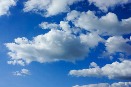 Deep blue sky background with withe clouds. Natural composition of nature.
