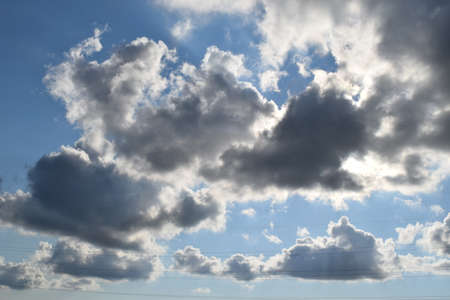 Blue sky with lots of thick clouds. Sky background. Cloudy weather.