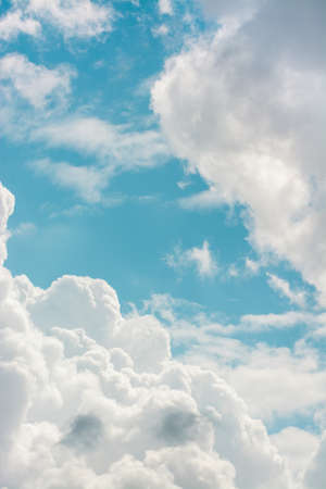 Abstract background of clouds sky with white voluminous foamy air magic clouds in a blue sky. Calm, relax, paradise, heaven, inspiration.