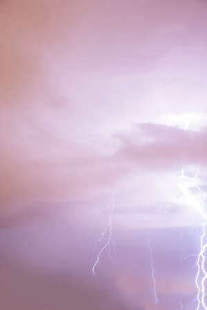 Lightning in dark and cloudy sky with purple colorshades