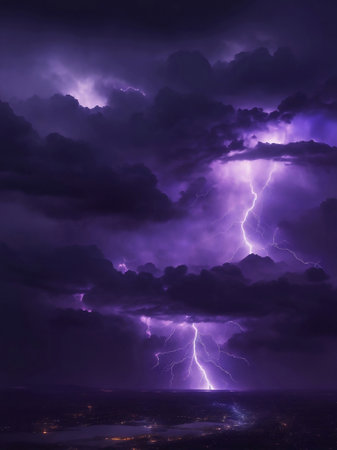 A powerful lightning storm illuminates the sky, creating a stunning display of nature's raw energy