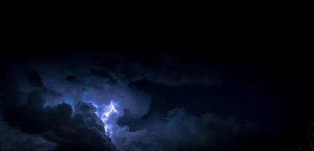 Electric Lightning bolt inside a thunderhead of dark blue clouds at night