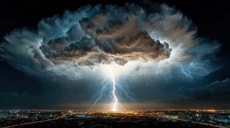 thunder roar and lightnings during dangerous dramatic thunderstorm, generative ai