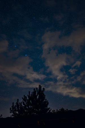 Stars in the night sky through the clouds
