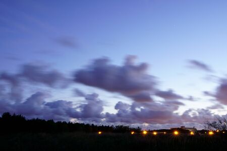 Clouds in the night sky. Starry night The photo is for a long time.