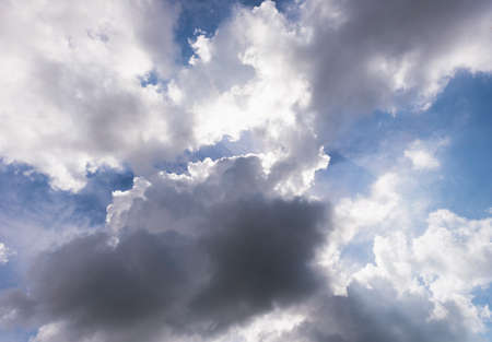 beautiful white and gray clouds on a blue sky, fluffy white gray clouds on a sunny day
