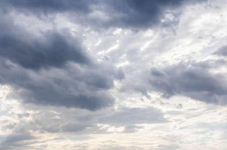 Sunset beautiful clouds on the dramatic stormy sky background before the rain. Dark stormy sky texture