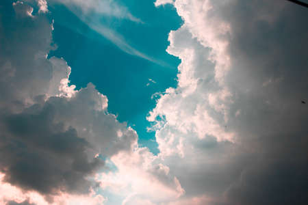 Blue sky and white clouds abstract background. Copy space nature and environment concept. Vintage tone filter effect color style.