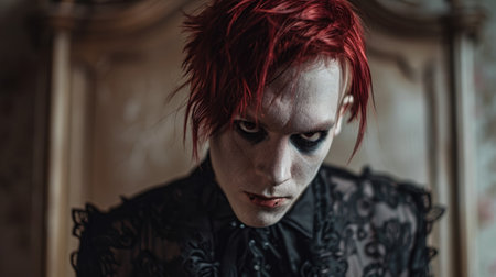 Adult White Man with Red Straight Hair Goth style Illustration.