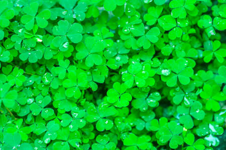 Background from plant clover four leaf. Irish traditional symbol. St. Patrick Day.