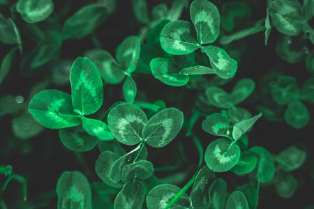 Macro shot of clover bushes, beautiful three-leaf clover. Green nature background