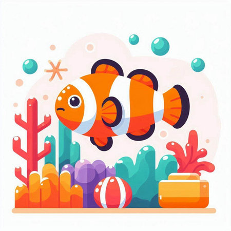 clown fish and coral underwater anemone fish life in the sea 3d illustration