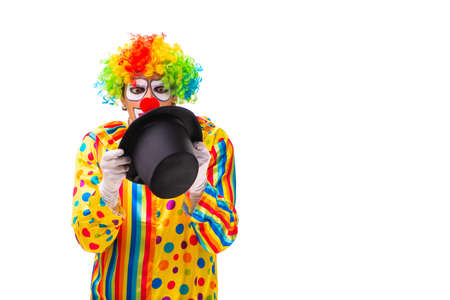 Funny cheerful clown waving isolated on white background. Generative Ai