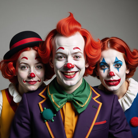 An AI generated illustration of three clowns in vibrant colors