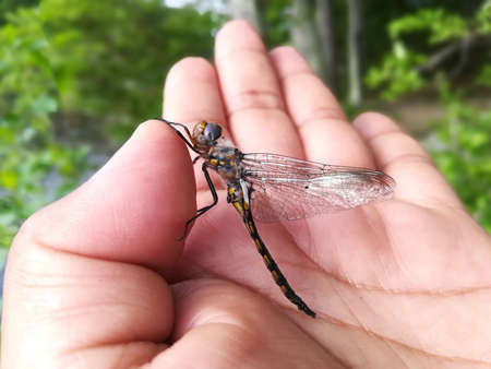 dragonfly on the hand, close-up of a dragonfly