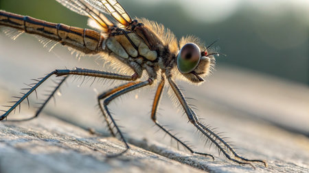 Highly detailed macro photography of a dragonfly. Generative AI.