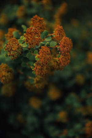 Cluster of a ripening rowan berries, nature bokeh. High quality photo