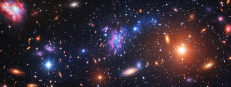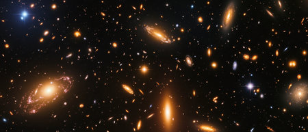 Stunning view of deep space filled with luminous star clusters and galaxies