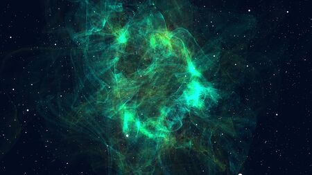 Computer generated colorful space background: spiraling nebula, stars and luminous galaxies. 3d rendering