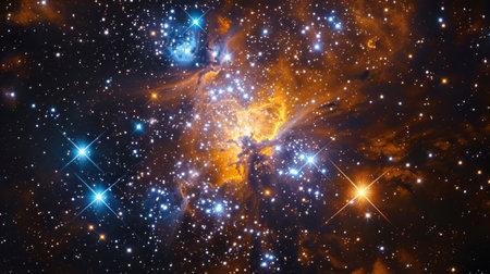 Realistic portrayal of the Open Cluster, displaying its young stars and open cluster structure Generative AI