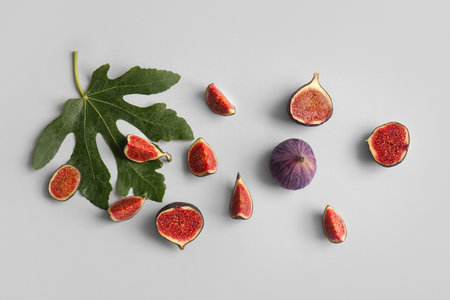 Composition with fresh figs on light background
