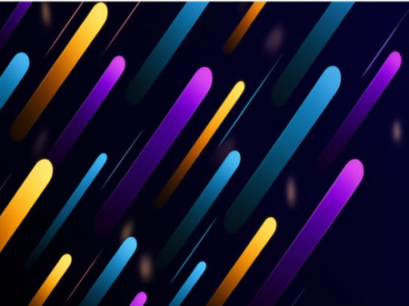 Bright, sweeping bands of hues glide across a dark backdrop, evoking a sense of motion and innovation in a sleek, high-energy visual design.