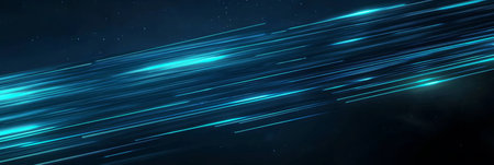 An illustration features streaks of blue light against a dark background. The composition suggests motion and high speed, with numerous lines radiating from a central point. The artwork uses digital techniques, creating a sense of energy suitable for various commercial purposes.