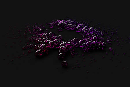 Purple bubbles on black floor, 3d rendering. Computer digital drawing.