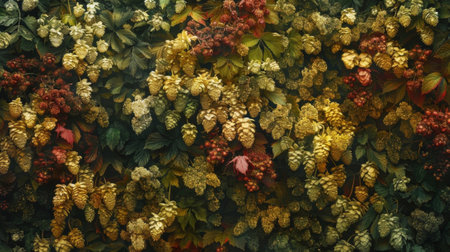 A hazy backdrop of various hop varieties with their vibrant colors and unique shapes blending together to create a mesmerizing and eyecatching display of natures beauty.
