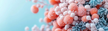 This image showcases dreamy pastel shades: soft pink and white berries against a serene blue backdrop The light, ethereal composition features delicate floral elements with a frosted, wintry feel Perfect for holiday content or adding pastel elegance to any project, its gentle tones create a soft and enchanting effect AI Generative
