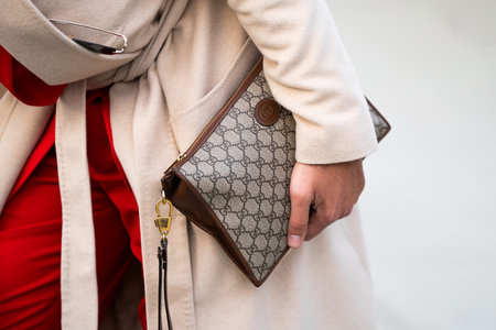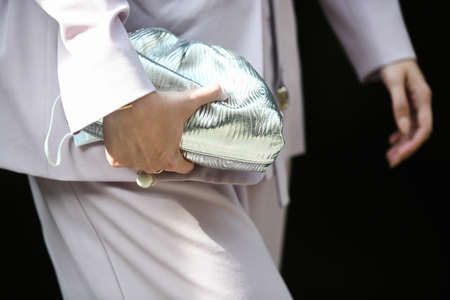 MILAN, ITALY - SEPTEMBER 23, 2016: Detail of bag outside Uma Wang fashion show building during Milan Women Fashion Week SS17.