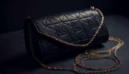 Shiny black leather bag with gold chain strap generated by artificial intelligence