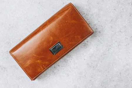 red wallet lies on brown leather, finance and economics, old red vintage fabric wallet