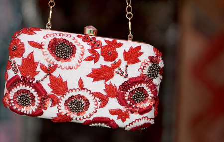 Close-up view of Indian woman hand bag or purse in a shop display for sale