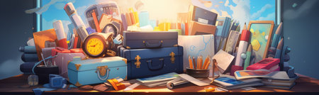 a briefcase overflowing with various office supplies such as erasers, rulers and markers symbolizing learning tools. Generative AI