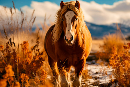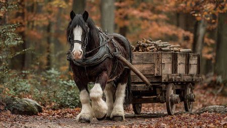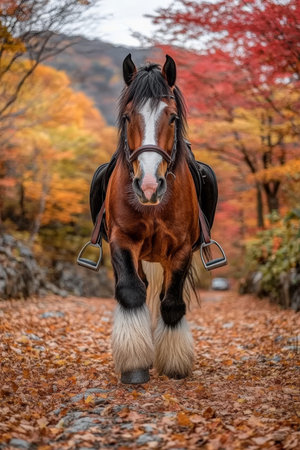 Majestic Draft Horse in a Vibrant Autumn Landscape, Showcasing Its Strength and Beauty in Nature