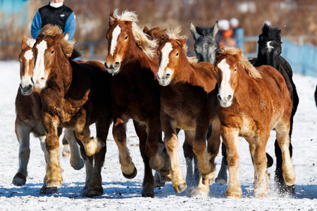 Chestnut Horses Family Painting, Beautiful Brown Horse Drawing Imitation, Abstract Generative AI Illustration