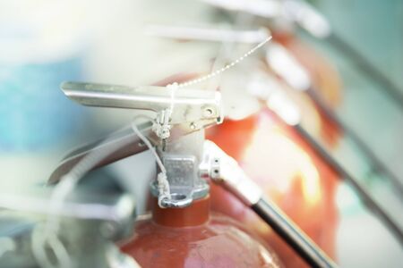 Blurred and Close up Red fire extinguisher.