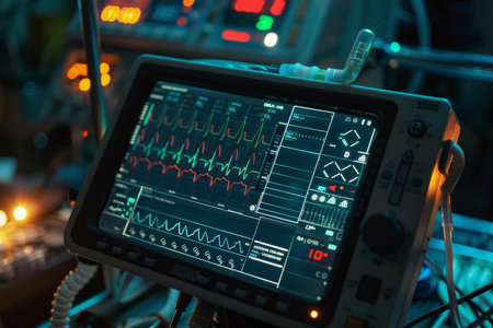 Surgeon monitoring patients heart rate with electrocardiogram on medical heart rate monitor screen