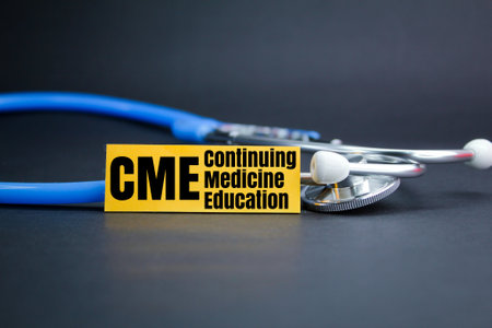 stethoscope and the letters CME or the word Continuing Medicine Education. medical concepts of medical learning