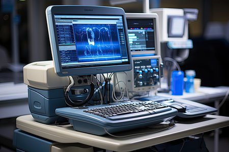 Modern ultrasound machine in clinic laboratory of sonography diagnostics.