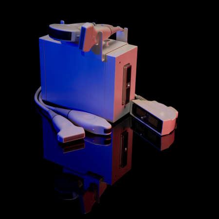 Close up in backlit high-tech ultrasound machine. Analysis, diagnosis of the condition of the disease using ultrasound scanning