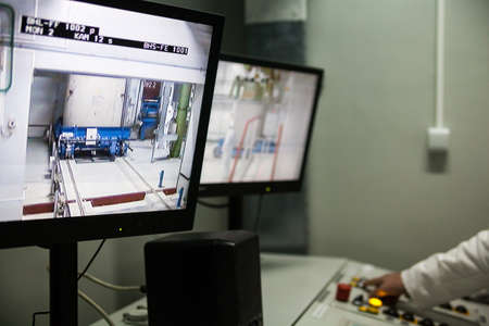 CHERNOBYL, UKRAINE - OCTOBER 16, 2015: Monitoring nuclear reprocessing in a control room at Chernobyl Nuclear Power Plant.
