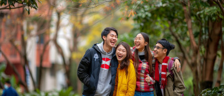 Cheerful University Students Engaged in Learning and Enjoying Campus Life