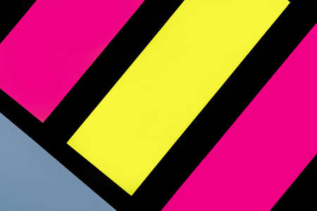 Colorful yellow, blue and pink pastel paper texture background, Geometric flat lay background.